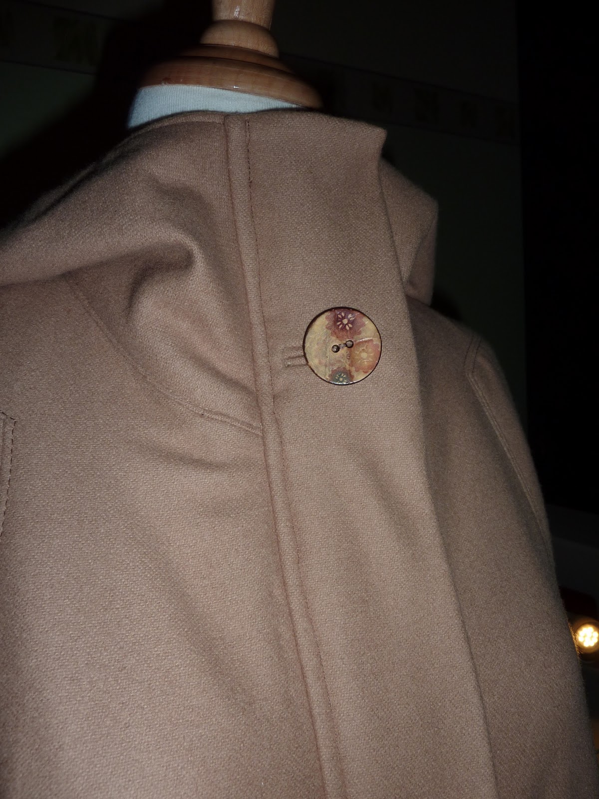 Hier noch ein Blick auf den schönen Knopf und auf das Innenleben. Es sieht nahezu perfekt aus. Alles schön sauber vernäht, ein gutes Gefühl.