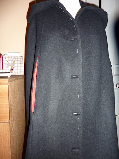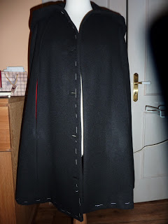Eigentlich wollte ich ihren Wunsch nicht gleich in die Tat umsetzen, aber die Versandkosten für den Stoff von Vannessa,s Morgenmantel waren ziemlich erheblich, so dass ich dann doch auch den Stoff entsprechend der Wünsche bestellte. Noch dazu lag ich mit meinen Weihnachtsvorbereitungen gut im Rennen, so dass mir tatsächlich Zeit für ein weiteres Cape-nähen blieb.