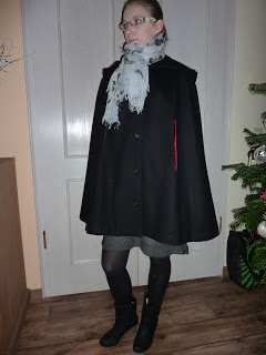 Von ihrem Geburtstagsgeschenk habe ich Euch schon erzählt. All meine Zweifel waren also unbegründet. Sie liebt ihr Cape und wollte ein Weiteres. Ihre Erklärung dazu war, dass sie das braune Cape nicht mit schwarzen Sachen anziehen möchte, weil schwarz und braun nicht zueinander passen 🙂