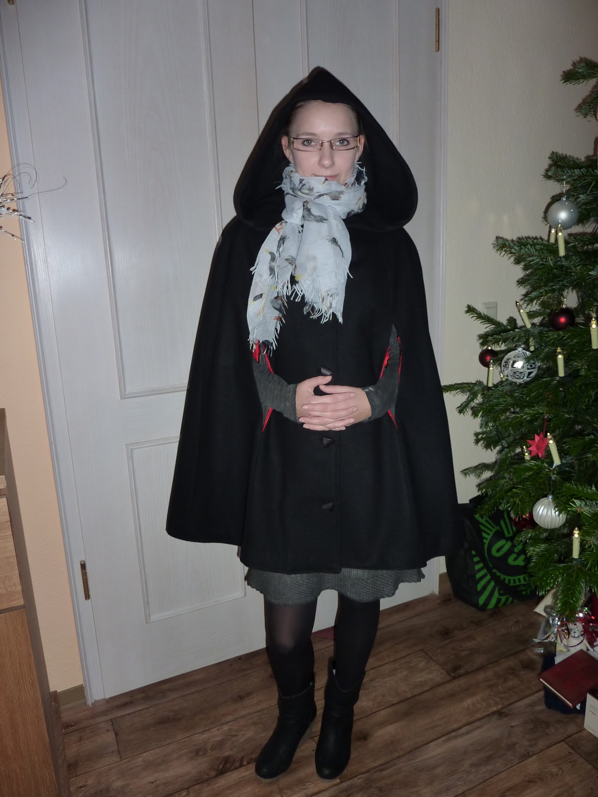 Von ihrem Geburtstagsgeschenk habe ich Euch schon erzählt. All meine Zweifel waren also unbegründet. Sie liebt ihr Cape und wollte ein Weiteres. Ihre Erklärung dazu war, dass sie das braune Cape nicht mit schwarzen Sachen anziehen möchte, weil schwarz und braun nicht zueinander passen 🙂