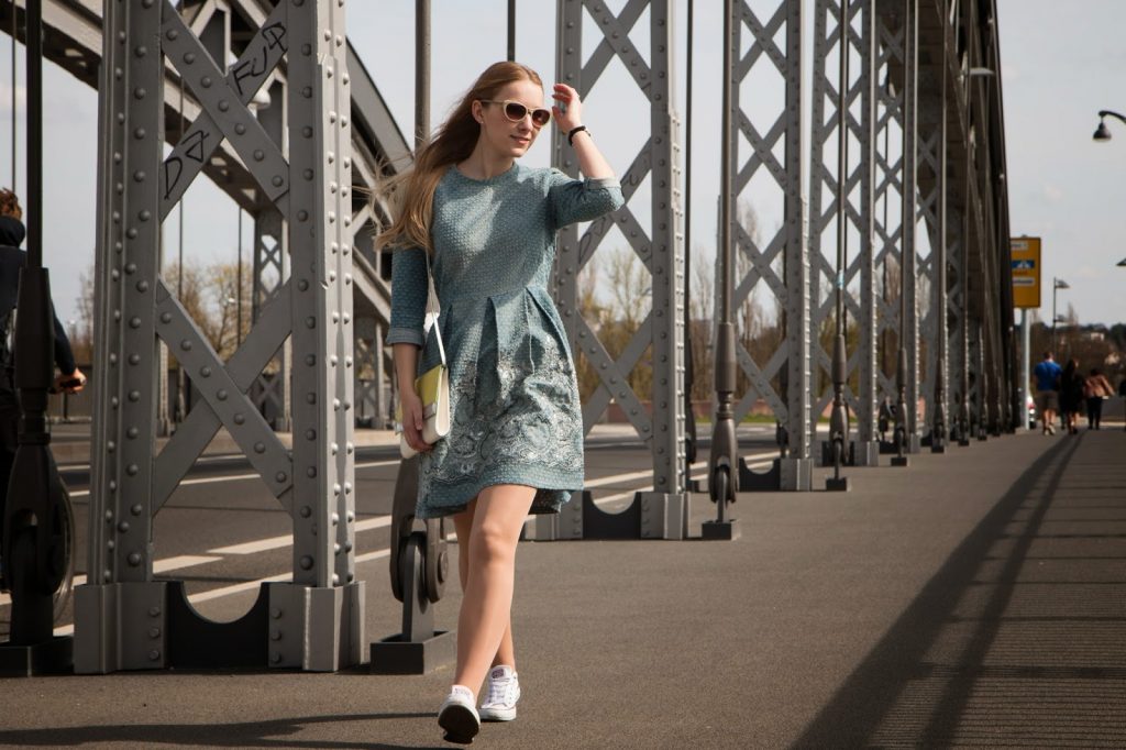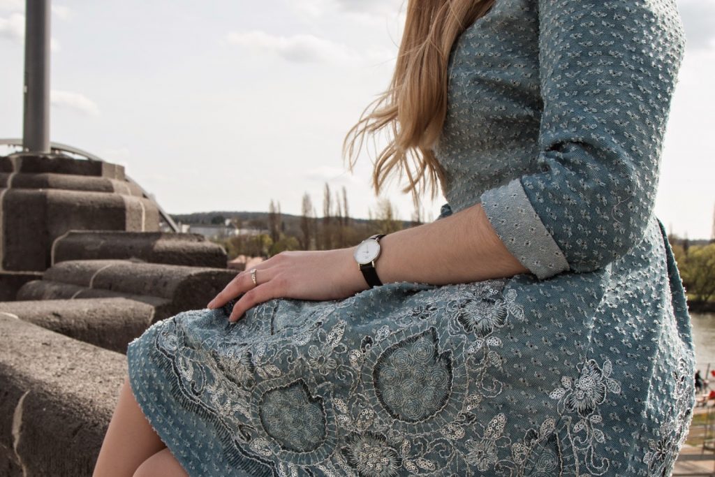 Das Modell habe ich bereits mehrfach genäht. Ich finde den Schnitt optimal. Die Faltenlegung ist äußerst vorteilhaft, so dass ich das Unterteil auch bei anderen Schnitten gern verwende. Leider habe ich nur noch einen Rest erworben, so dass die Stickerei an den Seitennähten nicht stimmig ist. Ich bin froh, dass meine Tochter diesen Makel nicht störend findet. Trotz unserer Entfernung hat das Kleid perfekt gepasst; es waren keine Änderungen erforderlich.