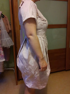 Aufgrund des naja schmeihelhaft ausgedrückt: nicht ganz passenden Kleides, war eine ganz schnelle Anprobe erforderlich. Mein lange geplanter Besuch am nächsten Tag auf dem Stoffmarkt in Potsdam wurde gestrichen, denn ich musste zwingend nähen. Anna war nur über Pfingsten zu Besuch bei den Eltern. Die zweite Probe am folgenden Tag lief besser, sie war nicht perfekt, aber besser.  Das machte mir Mut.