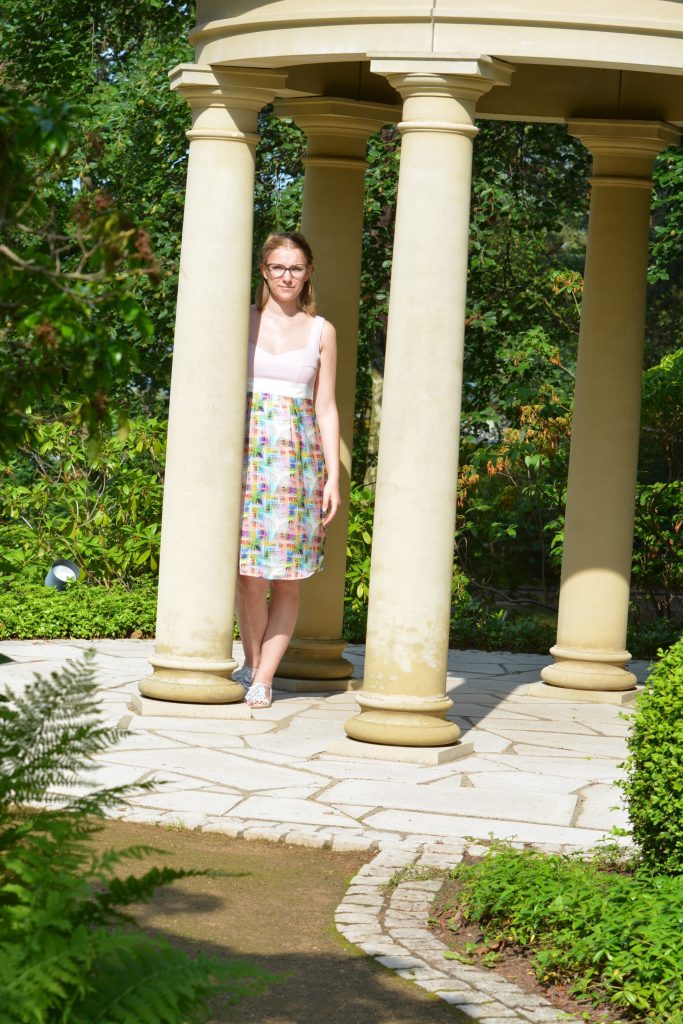 Hier zeige ich nun endlich Kleid Nummer 3 der werdenden Mama. In meinem vorangegangenen Post hatte ich schon erwähnt, dass es Kleid Nummer 2 und Nummer 3 geben wird. Auf den Schnitt möchte ich nun nicht mehr eingehen, denn darüber habe ich mich bereits ausführlich ausgelassen. Nur noch so viel: Dieses Kleid war ursprünglich nicht geplant. Wegen der umständlichen Anproben (Pakete hin und her schicken) hatten wir befürchtet, dass Kleid Nummer 1 auf dem Postweg abhanden gekommen war. Also schnell in den Stoffladen und einen Ersatzstoff besorgt. Das Oberteil hatte ich nämlich schon korrigiert hier auf meiner Puppe hängen. Glücklicherweise fand ich dann diese Viskose und dann war auch das Päckchen da 🙂