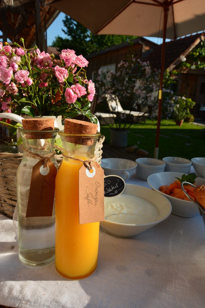 Der Höhepunkt unseres Aufenthaltes erwartete uns erneut am Frühstückstisch. Liebevollst hatten Gerti und Erwin für ihre Gäste das Frühstück gezaubert. Mit kulinarischen Köstlichkeiten haben sie unsere noch „weinmüden“ Sinne geweckt. Erneut wären wir gern viel, viel länger geblieben. Wenn uns nicht 900 Kilometer trennen würden, wären Urlaube hier regelmäßig Programm. Natürlich sind wir nicht ohne einen Vorrat ihres Kürbiskernöls gekauft zu haben, abgereist. Habt ihr schon mal Kürbiskernöl auf Vanilleeis probiert? Nein? Ein Traum, das verspreche ich euch 😉