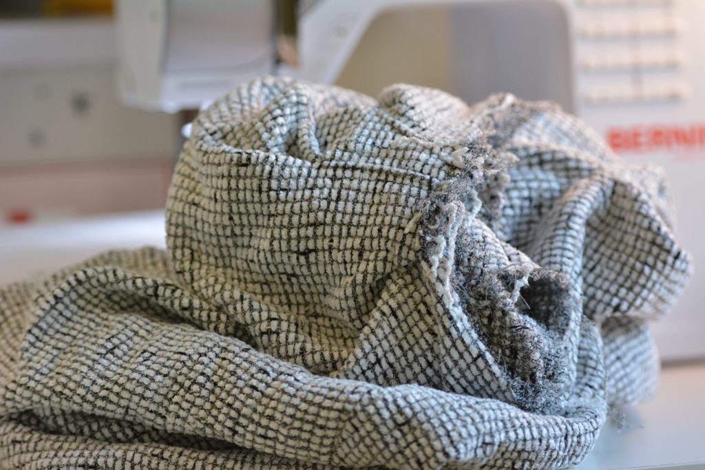 Das Bild mit dem Stoffhaufen hatte ich heute mit dem Ziel fotografiert, um über Instagram meine Resignation zu diesem unfertigen Modell mitzuteilen. Dann entschloss ich mich zu einer letzten Anprobe. Beim Blick in den Spiegel machte sich mein klitzekleiner Ehrgeiz bemerkbar, das Projekt wenigstens abzuschließen, um dann mit kompleten Outfit eine Entscheidung zu fällen. Zudem kann ich mich nur unschwer von diesem Stoff trennen.