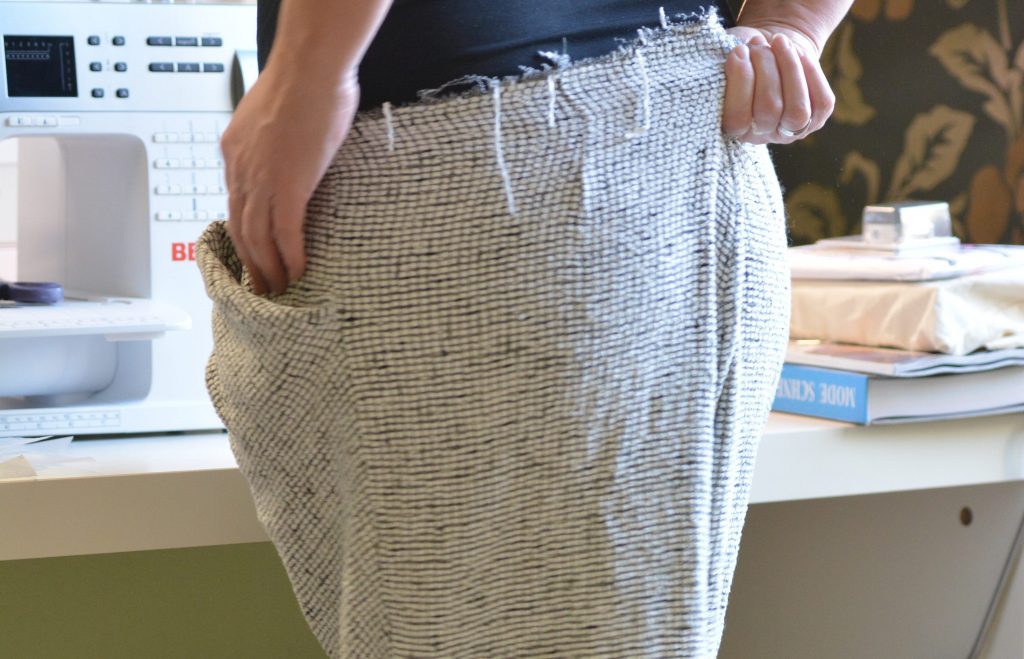 Meine Skizze zeigt in etwa den damaligen Schnitt. Die Spitzen, eigentlich waren es ja Taschenbeutel, wurden einfach nur nach innen gesteckt und optisch ergab es auch diese auffälligen Tascheneingriffe wie in dem Modell 106 aus der Novemberausgabe 2016.