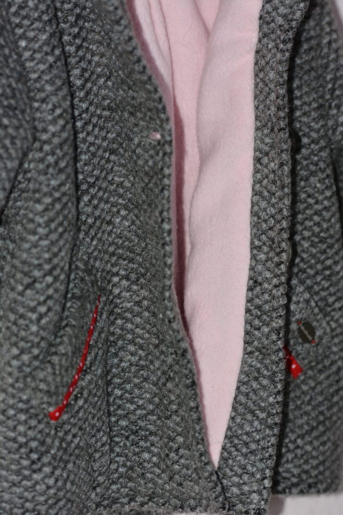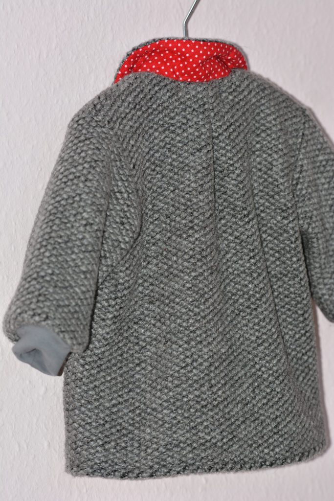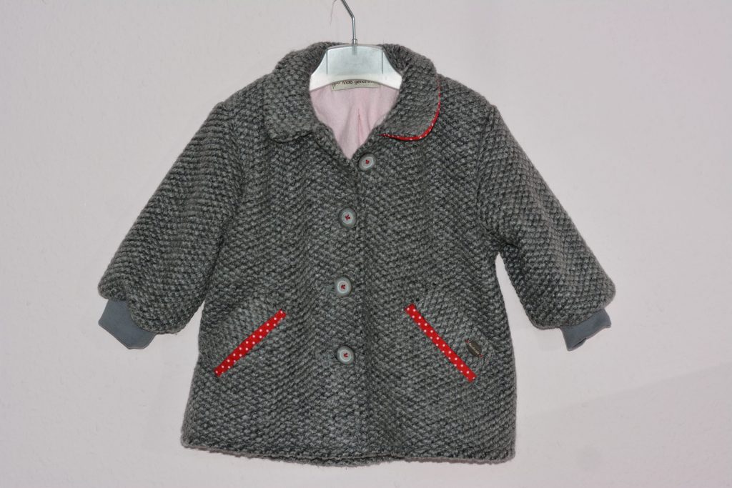 Meine Tochter war auf der Suche nach einer wärmeren Jacke für Marlena, eine die für Temperaturen noch vor dem Minus ausreichend ist. Per Whatsapp – Bild sollte ich zwischen zwei ausgesuchten Modellen entscheiden. Beide Jacken waren optisch nicht schlecht und gleich kam mir der Gedanke: Kann ich auch. Außerdem hatte ich noch einen Wollrest liegen und dieser könnte somit sinnvoll verwertet werden. Mein Vorschlag zum Nähen wurde erstmal nicht bejubelt. Meine Frage, ob beide Jacken ein Preis-Schnäppchen wären, wurde verneint.