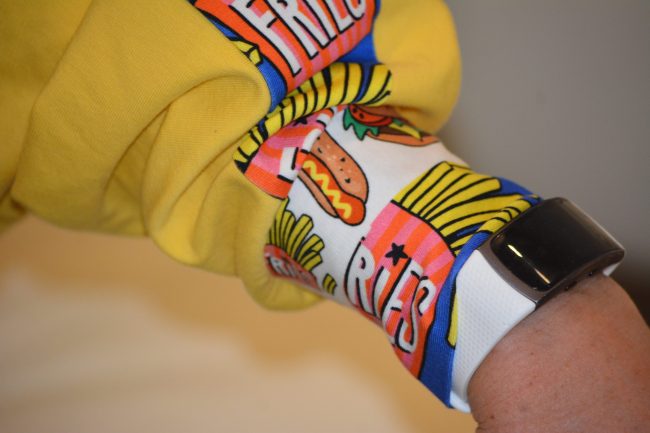 Kennt ihr auch den Satz: „Jeder sollte eine Pommeshose haben“? Ich fühlte mich bedingungslos angesprochen und betrachtete neidvoll all die schönen Modelle der Probenäherinnen. Ich erinnere mich noch gut daran, wie ich der Auslieferung dieses Stoffes entgegengefiebert habe. Natürlich gehörte ich ebenfalls zur Masse derjenigen, die auf eine Nachlieferung warten musste. Was war ich…