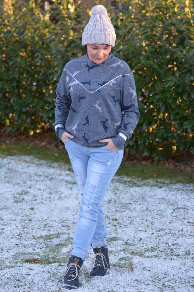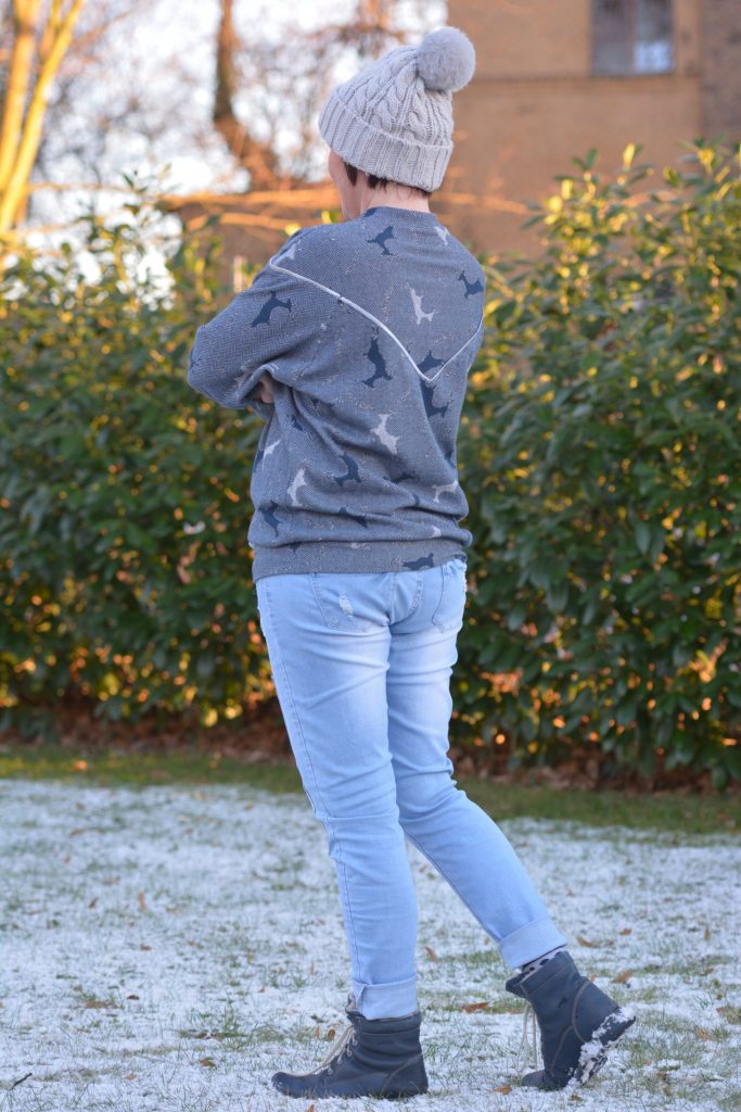 Insgesamt wird er nicht mein Lieblingssweat werden. Das liegt aber ausschließlich am Stoff bzw. am Farbton. Ich finde ihn viel zu dunkel für mich. Ich habe daher das Ziel, dieses Modell mit frühlingsfrischen Farben ein weiteres Mal umzusetzen.