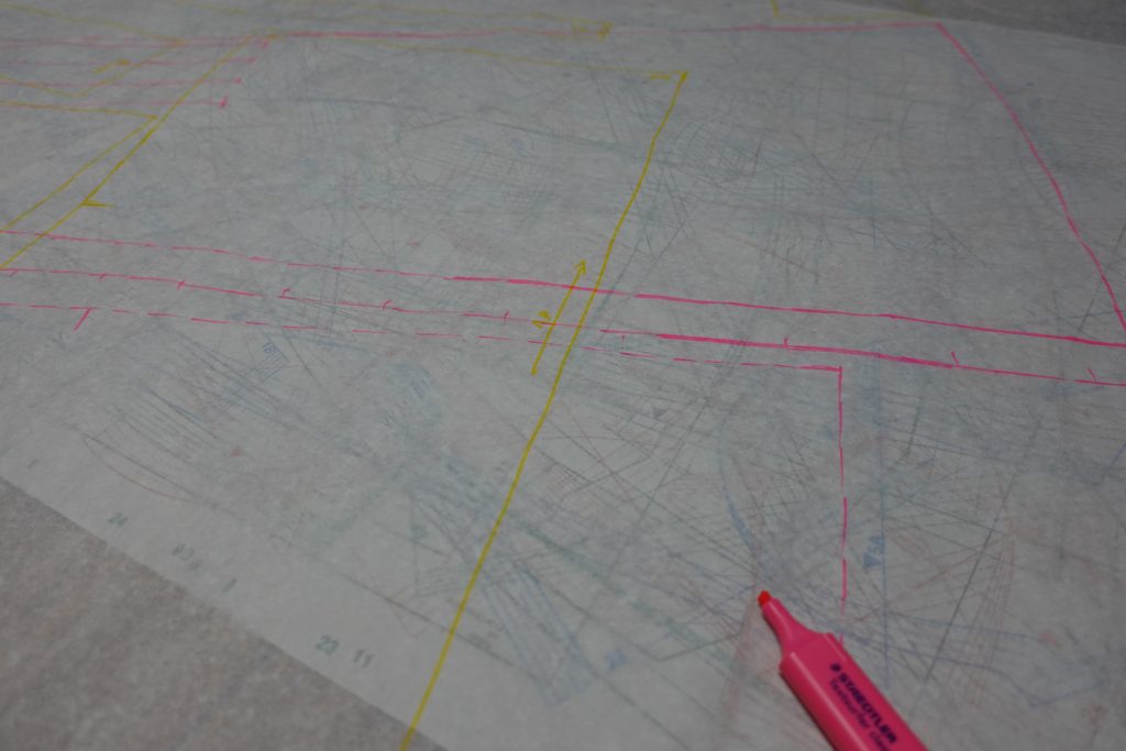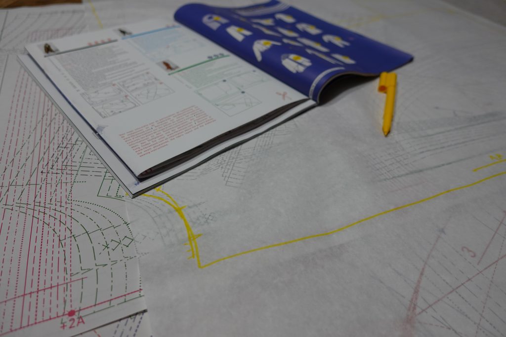 Ich lese ja hin und wieder kritische Anmerkungen, wenn ein Schnittmuster nicht von Größe 32 bis mindestens Größe 58 zur Verfügung steht. Erwische mich selbst, dass mir ab und zu ausgerechnet ein Schnitt in meiner abonnierten Zeitschrift gefällt, der nicht in meiner Größe zur Verfügung steht und denke dann – schade. Schade aber auch, dass in meiner neuen Zeitschrift jeweils alle Größen zur Verfügung stehen. Wenn 14 Größen in einer Farbe dargestellt sind, ist die Passgenauigkeit meiner Kopie fraglich. Die Unterscheidungen durch lange Striche, kurze Striche usw. gedruckt auf umweltfreundlichem Papier sind irgendwann nicht mehr hilfreich, für mich nur schwer erkennbar und das Abpausen damit richtig anstrengend.