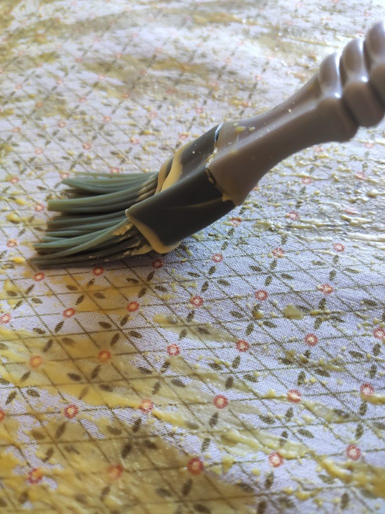 Insgesamt sind hier in fast 6 Stunden Dauereinsatz 12 Sets a 3 Tücher entstanden. Dafür habe ich ca 800 Gramm Bienenwachs verbraucht. Fragt bitte nicht nach der Sauerei rings herum und dem Säubern aller benötigten Materialien – hier habe ich wirklich laut geflucht. Beim Pinseln sind dann doch einige Wachströpfchen in der Gegend verteilt worden 🙂 Auch würde ich euch eine Schürze empfehlen. Der Wachs klebte sogar an meiner Kleidung.