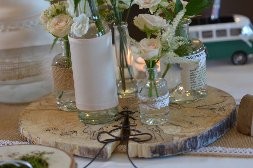 Neben dem Brautpaar war ich auch auf die gesamte Dekoration neugierig. Die Deko wurde, wie auch bei unserer Hochzeit und bei der Hochzeit unserer Kinder, von meiner Cousine (der Schwester des Bräutigams) handgefertigt. Ihre Ideen beeindrucken mich schon viele Jahre und sie versteht es auch nach Jahren noch zu überraschen. Ich muss hier unbedingt ein paar Details festhalten und bestimmt seid auch ihr für Inspirationen offen.