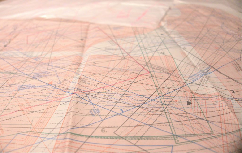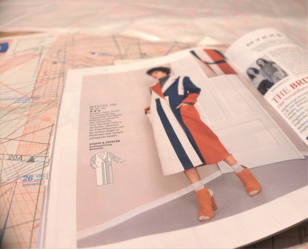 Genaue Vorstellungen vom Grundschnitt hatte ich bereits beim Stoffkauf. Nun musste nur das geeignete Schnittmuster gefunden werden. Das ist oftmals der längste Part beim Nähen eines Kleidungsstückes. Eigentlich hatte ich das Schnittmuster schon im Kopf, scheute mich aber vor dem doch aufwendigen Kopieren. Ganz nach dem Motto, dass ich ggf. etwas Vergleichbares finden könnte, blätterte ich in meiner umfangreichen Sammlung und auf diversen Internetseiten. Trotz umfangreicher Recherche überzeugte mich kein anderer Mantelschnitt, so dass ich mich erneut für das Designerschnittmuster von Mykke Hoffmann entschied.