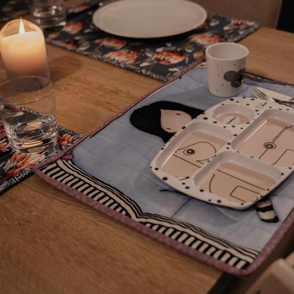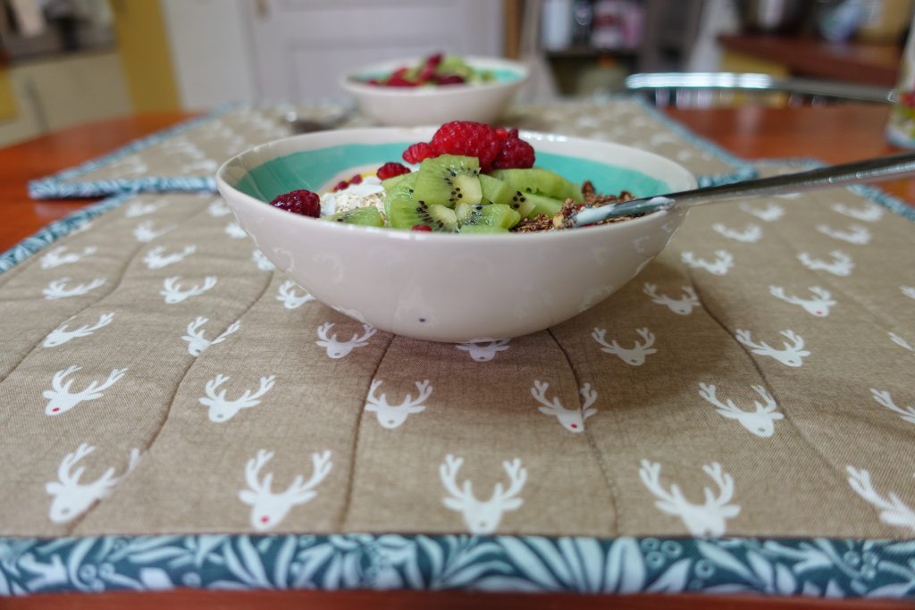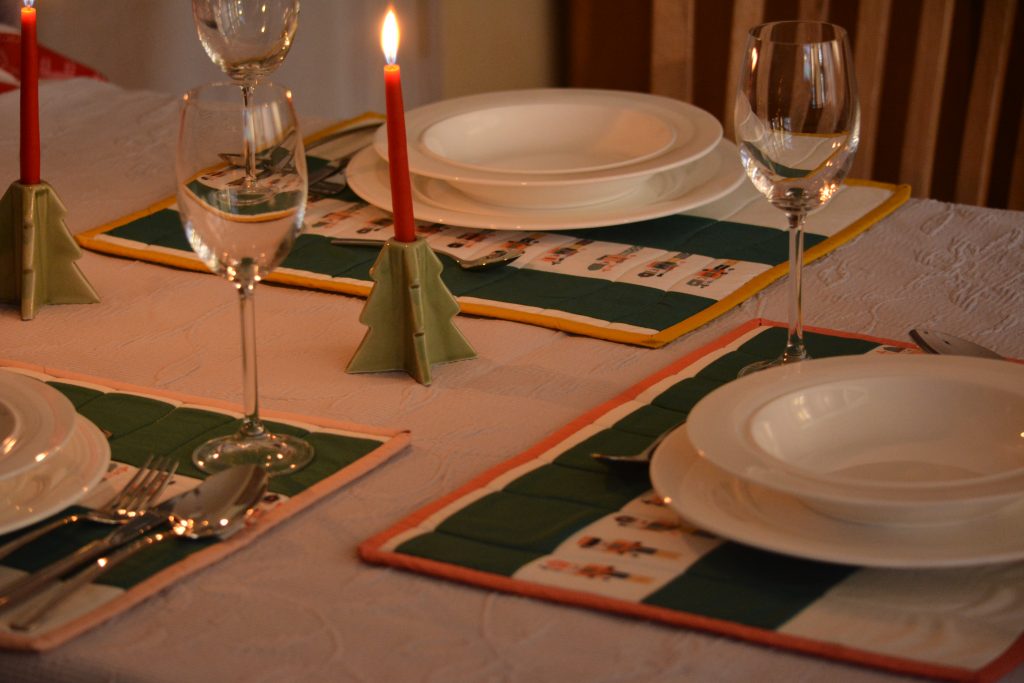 Um es kurz zu machen: „Sie sind schön aber wir wollen sie nicht“. Das war der Kommentar von Beiden. Sie möchten ihren Holztisch in natura genießen, d.h. ohne jegliche Abdeckungen. Bereits beim Nähen hatte ich für mich entschieden, dass ich nicht traurig sein werde, wenn sie in ihrem Wohnkonzept keine Tischwäsche vorgesehen haben. Mit Freude waren diese Sets somit hier bei uns, bis zur Fertigstellung der weihnachtlich- winterlichen Designs, im Einsatz. Die ehrliche Abfuhr war also wirklich nicht schlimm. Marlenas Tischset durfte im Übrigen dort bleiben. Hin und wieder ist es sogar im Einsatz.