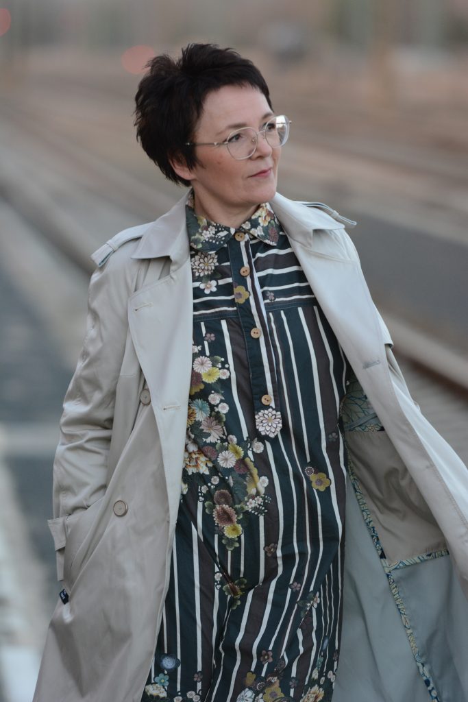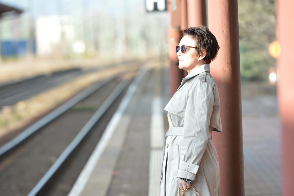 Endlich kann ich mein Hemdblusenkleid aus dem Stoff von Mood Fabric öfter tragen. Mir fehlte bisher die richtige Jacke. Als Foto Location diente uns mal wieder unser Bahnhof. Meinen Mann fand meine Idee anfangs nicht wirklich gut. Beim Fotografieren hatte er dann doch ein gutes Gefühl. Immer wieder bin ich dankbar, dass er mein Hobby diesbezüglich unterstützt, auch wenn dabei manchmal die Fetzen fliegen 🙂