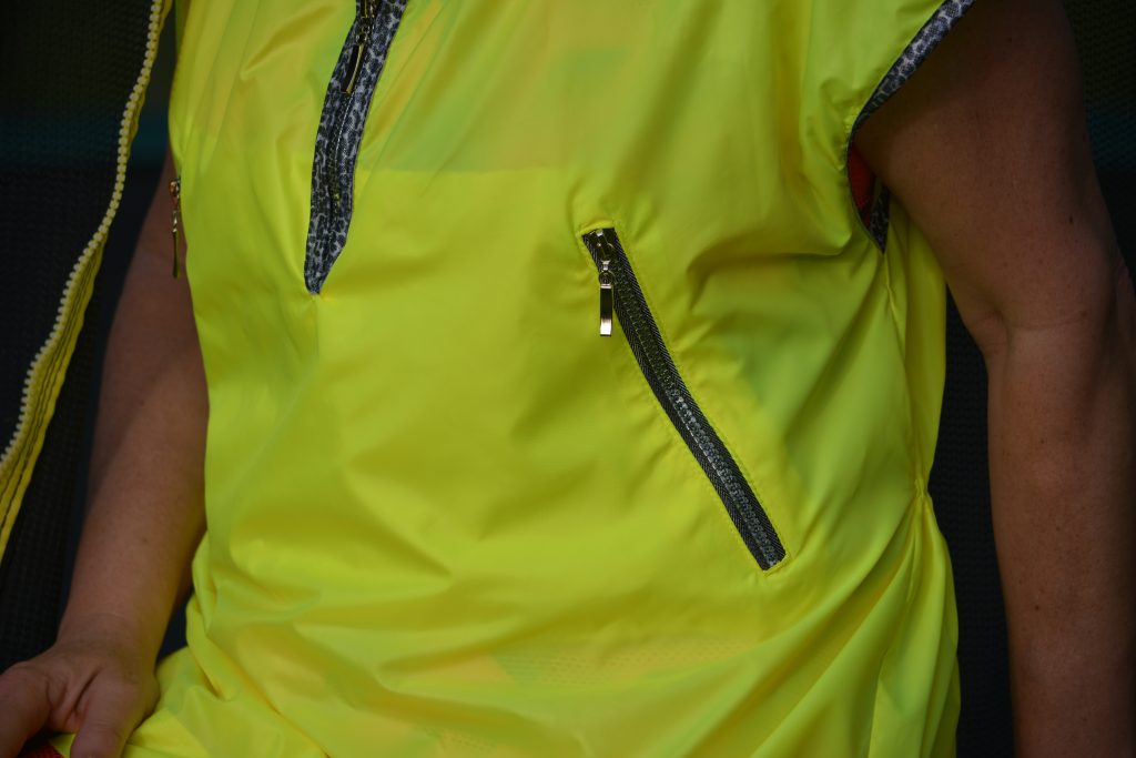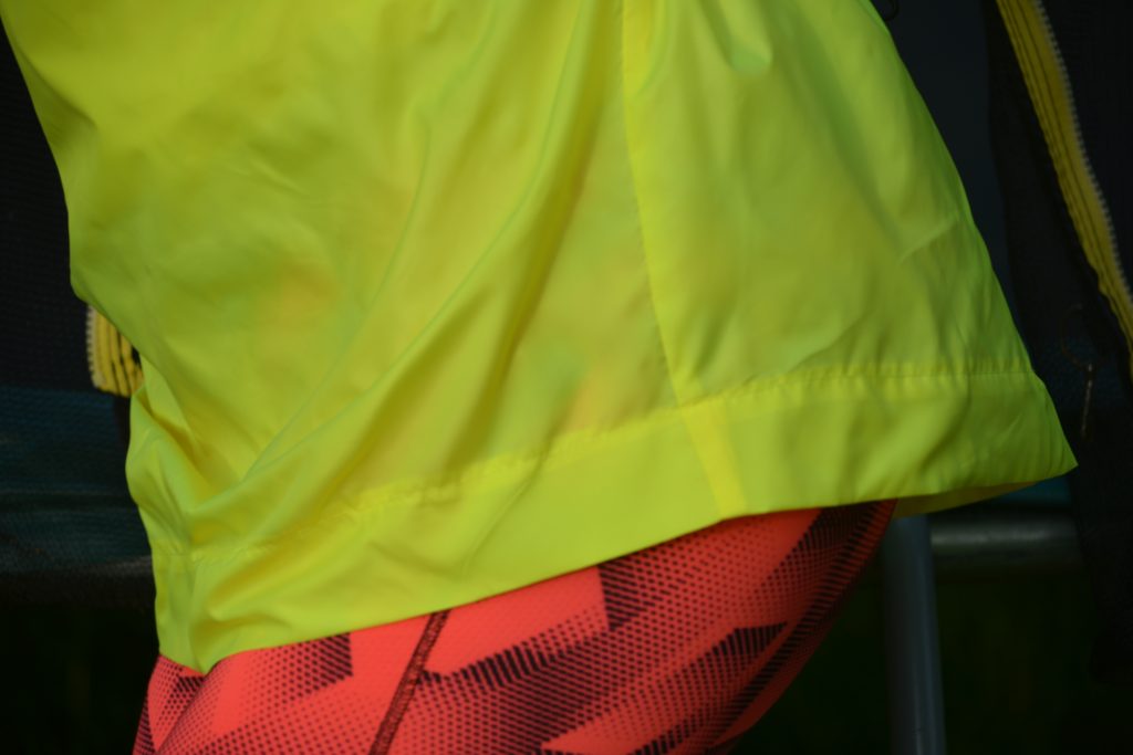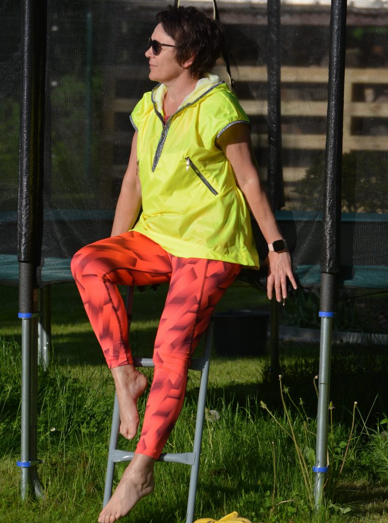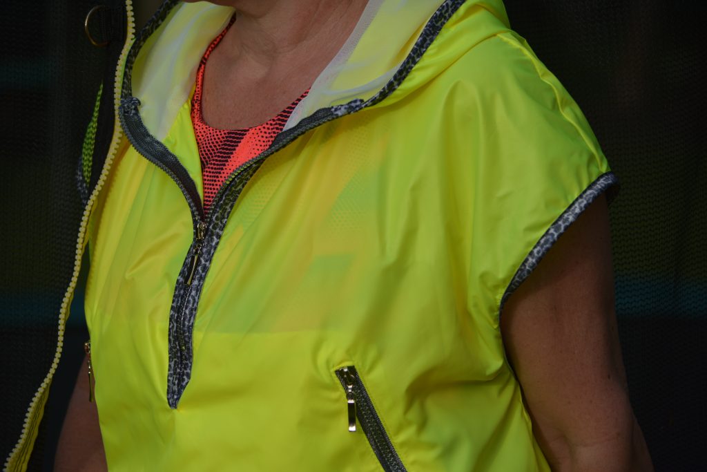 Das Material (Waterrepellent-neongelb) hat sich sehr gut vernäht. Auch mit der Overlock hatte ich keine Schwierigkeiten. Meine anfängliche Unsicherheit war absolut unbegründet. Schade das ihr das Material nicht fühlen könnt….es ist so luftig leicht. Ob es sich in der harten Praxis bewährt, bleibt abzuwarten. Aktuell darf ich keinen Sport treiben, d.h. der richtige Funktionstest muss noch etwas warten. Sofern das Material zum hitzigen Joggen ungeeignet sein sollte, so bin ich trotzdem voller Freude. Ich habe nun ohnehin vor, mich intensiver mit Funktionsstoffen zu beschäftigen. Selma wird es garantiert noch mehrmals unter meine Nähmaschine landen, dann eben auch aus anderen Materialien.