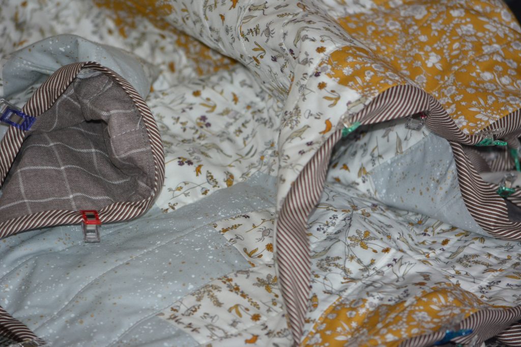 Zum Schluss ging es um das Annähen des Bindings. Auch hierbei konnte ich Neues von Steffi lernen. Noch nie waren mir die Ecken so gut gelungen wie bei meinem Quilt. Auch die Methode beim Zusammennähen der Enden finde ich genial. Eine Seite vom Binding habe ich meditativ auf dem Sofa per Hand angenäht. Hier habe ich dann gefühlt ewig gebraucht.