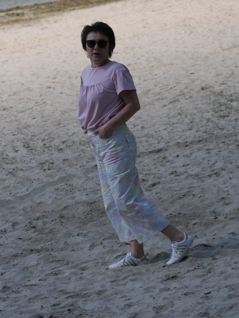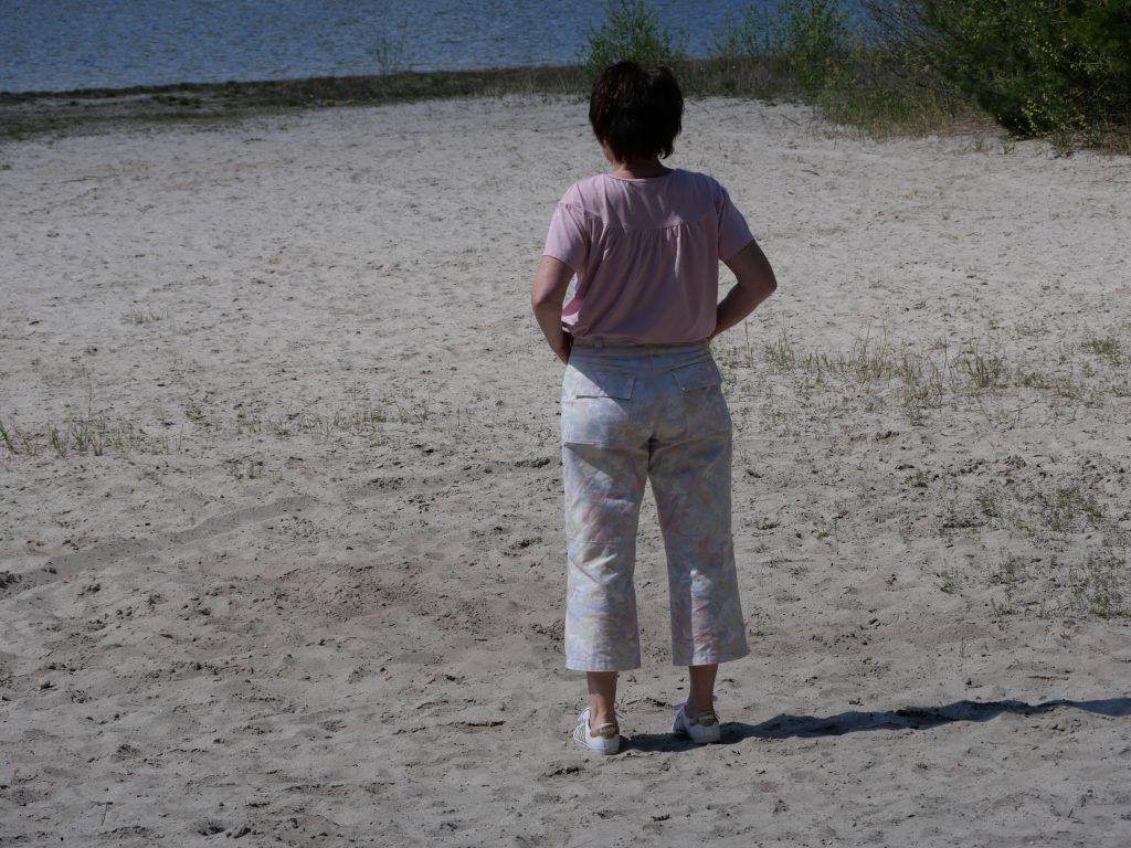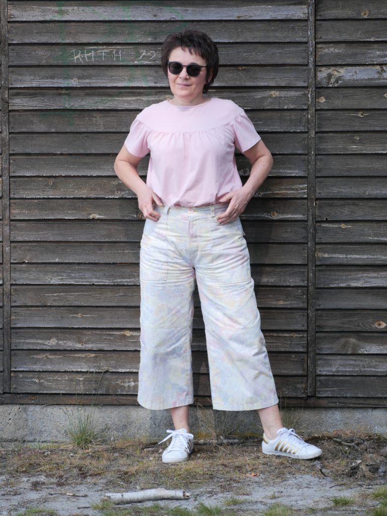 Die Hosenbeine haben eine Teilungsnaht, auch das finde ich hier passend. Begeistert bin ich außerdem von der Passform, anziehen und wohlfühlen, den ganzen Tag.
