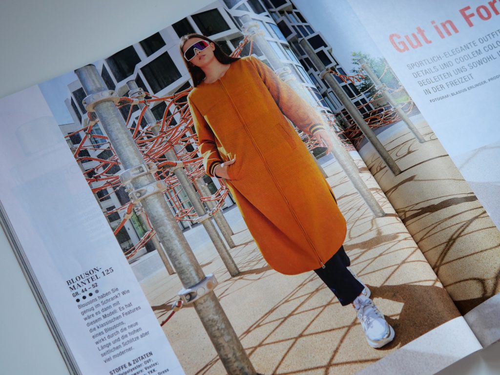Unbedingt wollte ich einen langen Steppmantel und begab mich auf die Suche nach einem passenden Schnittmuster, das altbekannte zeitaufwendige Problem. Ich stöberte zur Abwechslung in meiner Burda-Style Sammlung und fand in der Ausgabe 11/2019 den unten gezeigten Mantel. Das Schnittmuster begann ab Größe 44 und kam daher nicht direkt in die enge Auswahl. Dennoch blieb es im Gedächtnis und als ich bei Andrea (Frau März) lesen konnte, dass sie ihre Jacke auch deutlich größer zugeschnitten hatte, war meine Entscheidung gefallen.