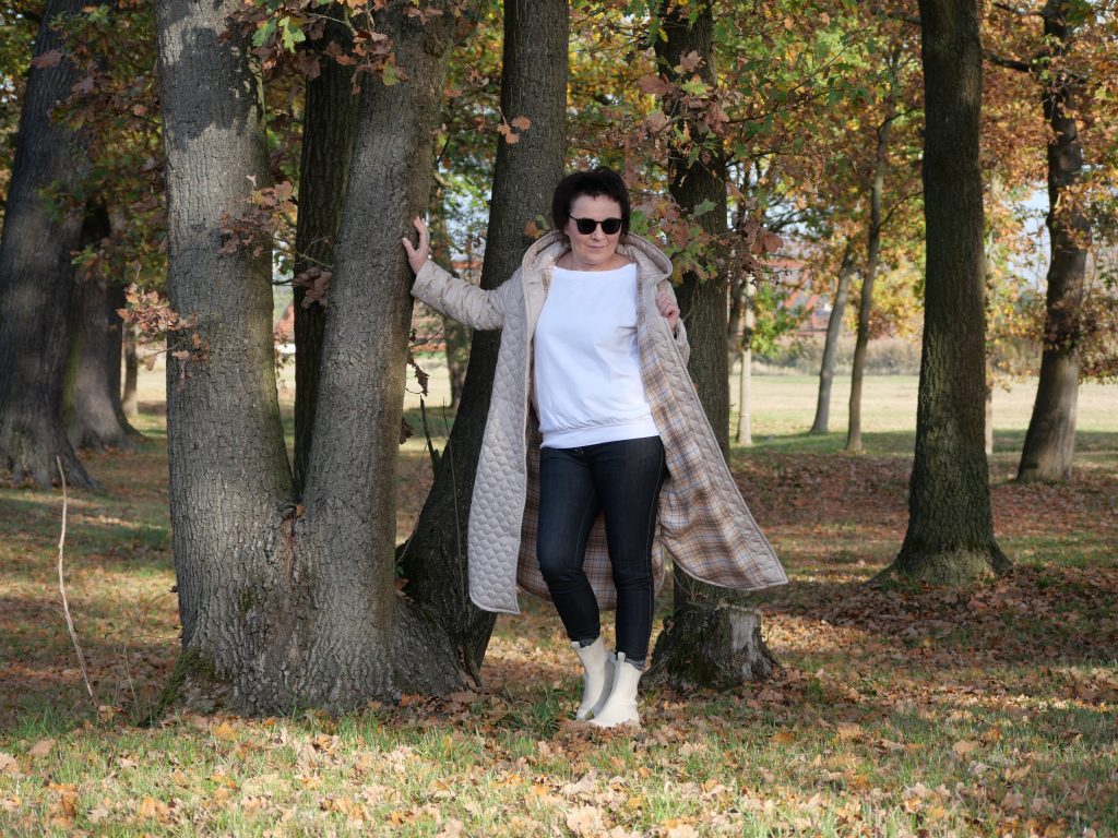 Was für ein wunderbarer Steppmantel. Und die Idee mit der Kapuze ist großartig.