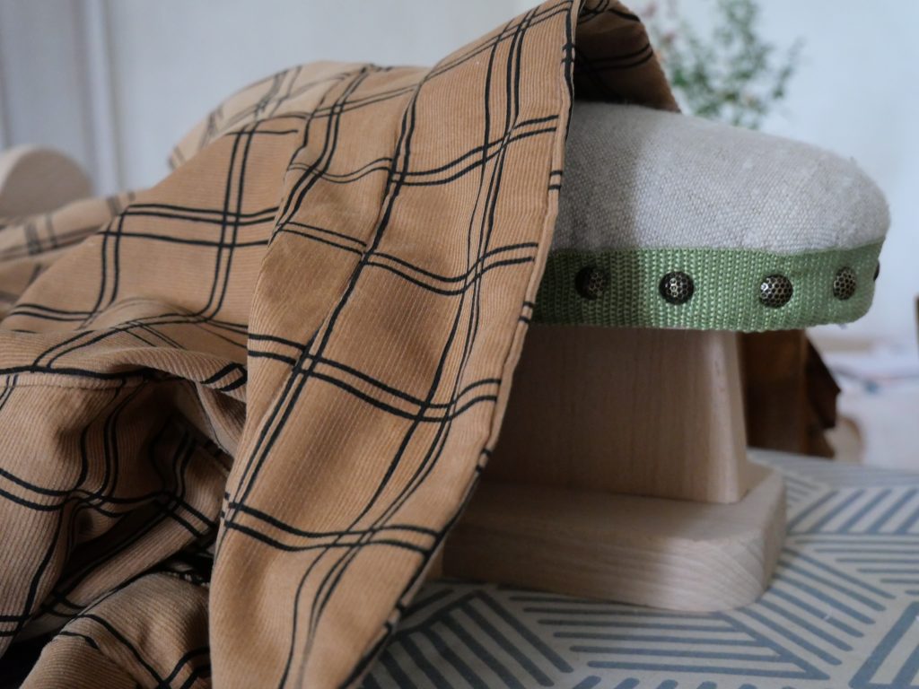 Ich begann das Kleid wie in der Anleitung beschrieben zu nähen. Die Knopfleiste und der Kragen sind gut bebildert und beschrieben. Immerhin gibt es einen Ober- und einen Unterkragen, was nicht bei jedem Schnittmuster üblich ist. An dieser Stelle muss ich noch einmal die selbst gebauten Bügelwerkzeuge feiern. Ich verwende sie wirklich oft und bin meinem kreativen Mann bei jeder Verwendung dankbar.