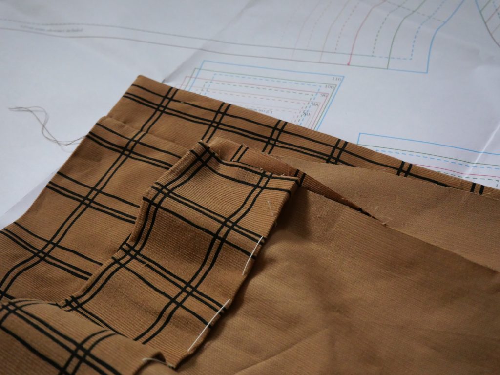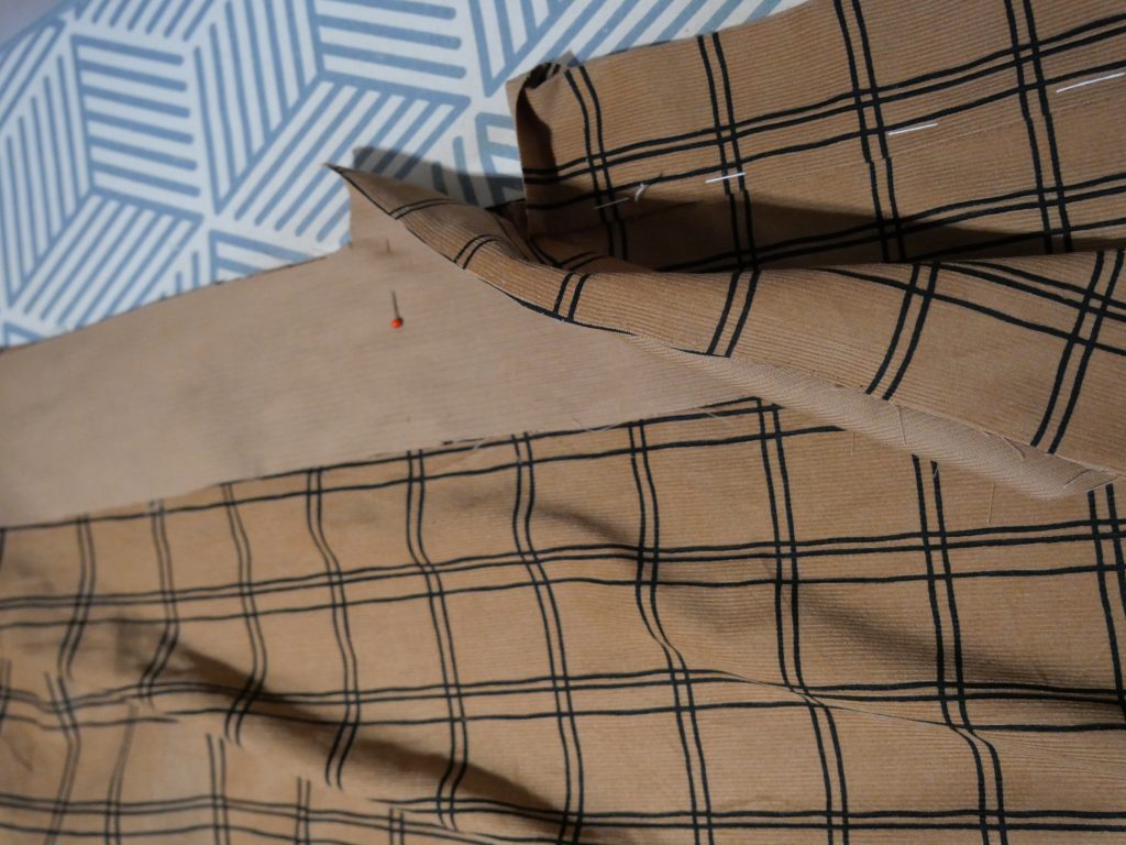 Mit dem Karo hatte ich mir natürlich eine besondere Hürde auferlegt. Die Querlinien sollten an den Seitennähten übereinstimmen. Für die Knopfleiste wollte ich mit dem schrägen Fadenverlauf arbeiten. Der Zuschnitt dauerte entsprechend länger, aber mit meinem kränkelnden Mann konnte ich mich auf ein gesamtes Nähwochenende freuen.