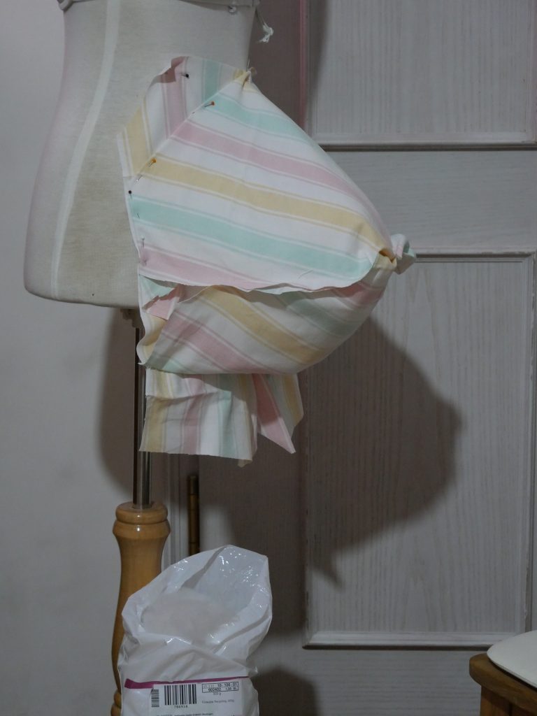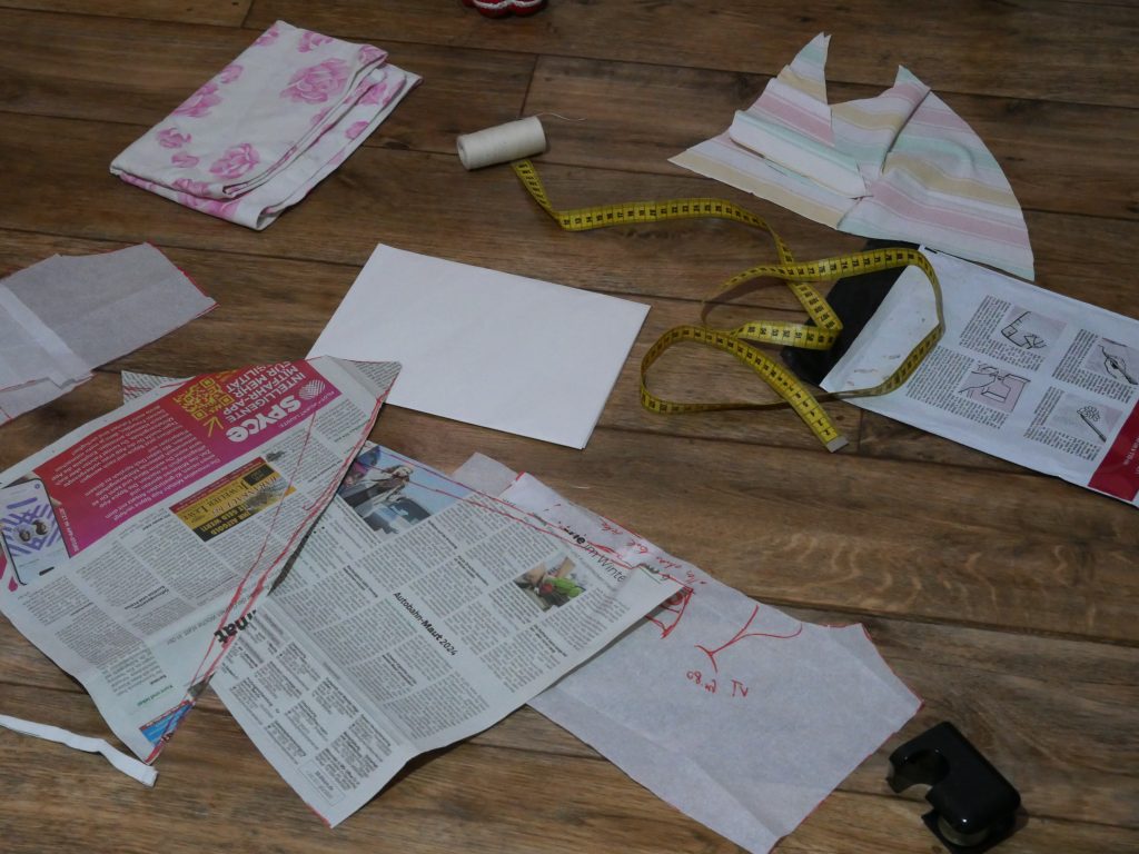 Der Umsetzung eines Kleides sah ich entspannt entgegen. Ein Kostüm, dem Fabius auf dem Video ähnelnd, war die Herausforderung. Die Tatsache, dass die Kinder nicht hier vor Ort sind, machte es zudem schwer. Aus alter Bettwäsche habe ich meine Ideen ausprobiert. Damit war ich Tage beschäftigt, weil mich das Ergebnis nie überzeugt hat. Wichtig war mir, dass sich miniM darin bewegen kann, es nicht zu schwer wird und es auch unkompliziert anzuziehen ist. Allein aus dem Video war nicht annähernd zu erkennen, wie das Kostüm genäht worden ist. Auch drückten sich im Video deutlich Schaumgummiflocken(?) ab. Das kam ohnehin nicht in Frage.