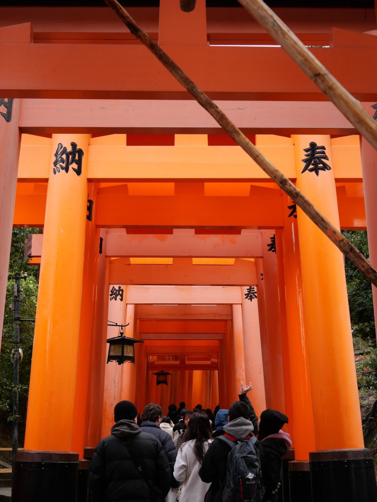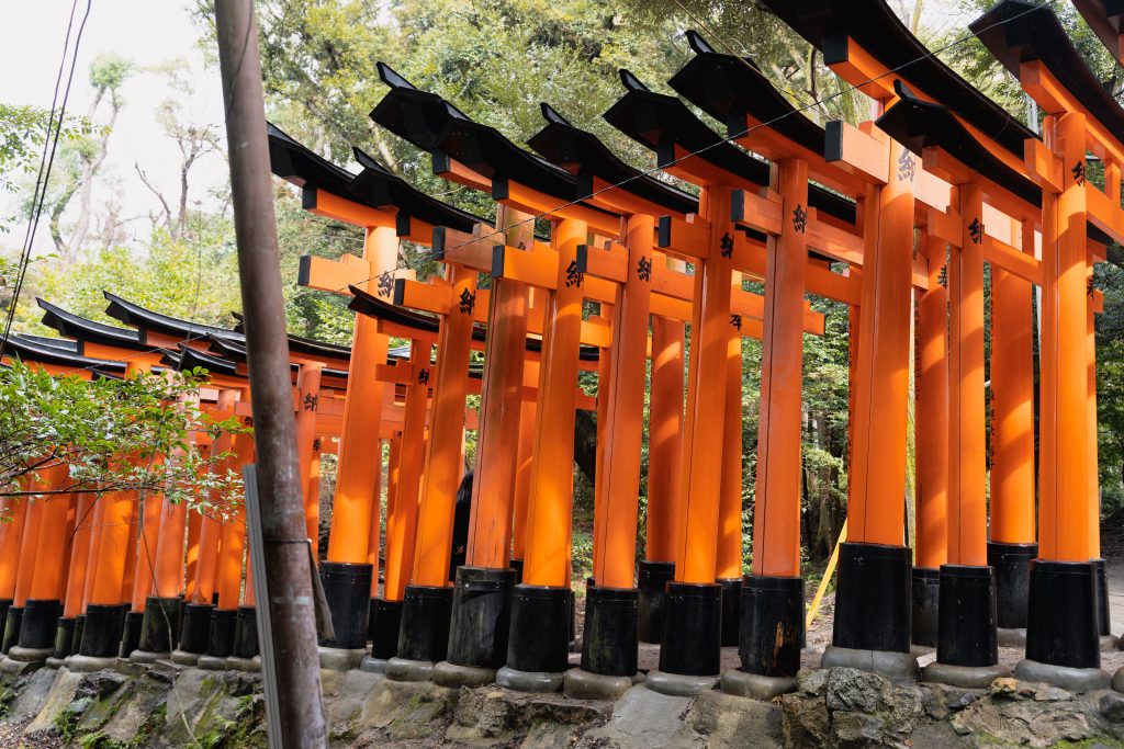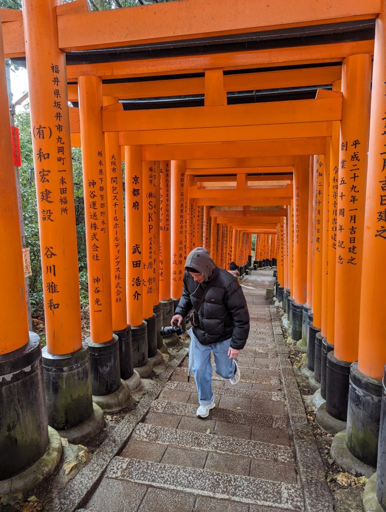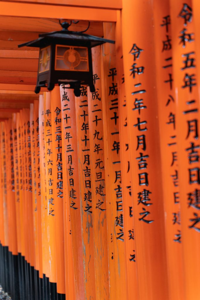 Der Fushimi Inari ist der Hauptschrein von den im ganzen Land verteilten ca. 40.000 Inari Schreinen und zählt laut Reiseführer zu dem beliebtesten Schreinen Japans. Kein Wunder, die über 1.000 zinnoberroten Schreintore sind wundervoll. Auf der Rückseite der Schreintore ist jeweils der Name des Spenders erfasst.