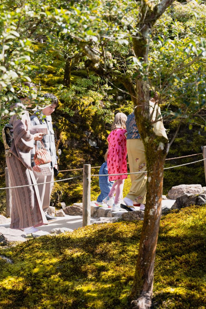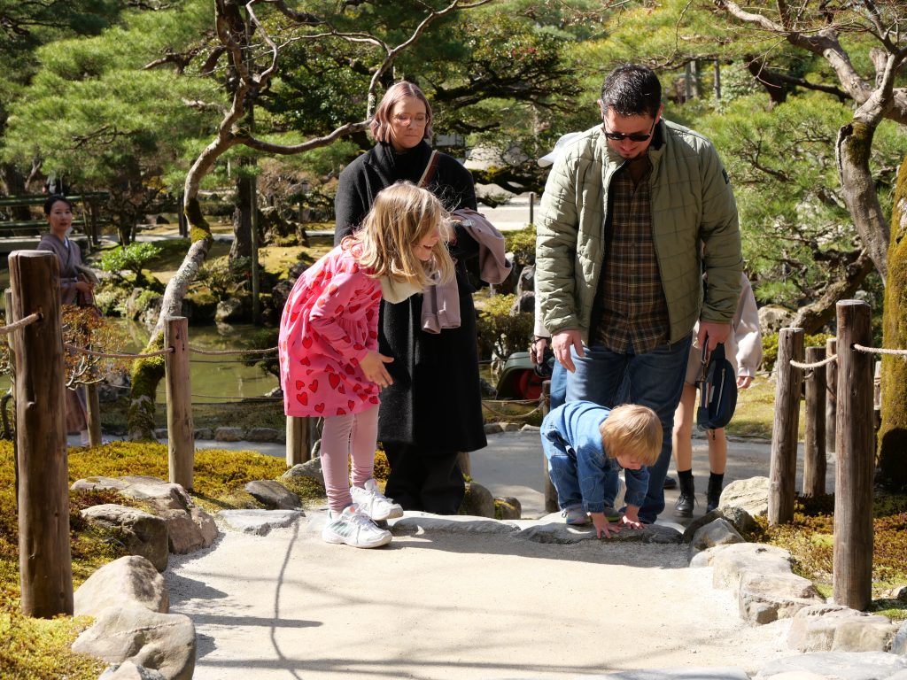 Dieser liegt in einem wunderschönen Garten und zählt zu einem der Hauptsehenswürdigkeiten Kyotos. Wir hatten Glück, denn die Besucheranzahl hielt sich überraschend in Grenzen. Neben unserer Bewunderung für die geschmackvolle Anlegung des Gartens, konnten die beiden Kids ihren Bewegungsdran ungehindert ausleben.