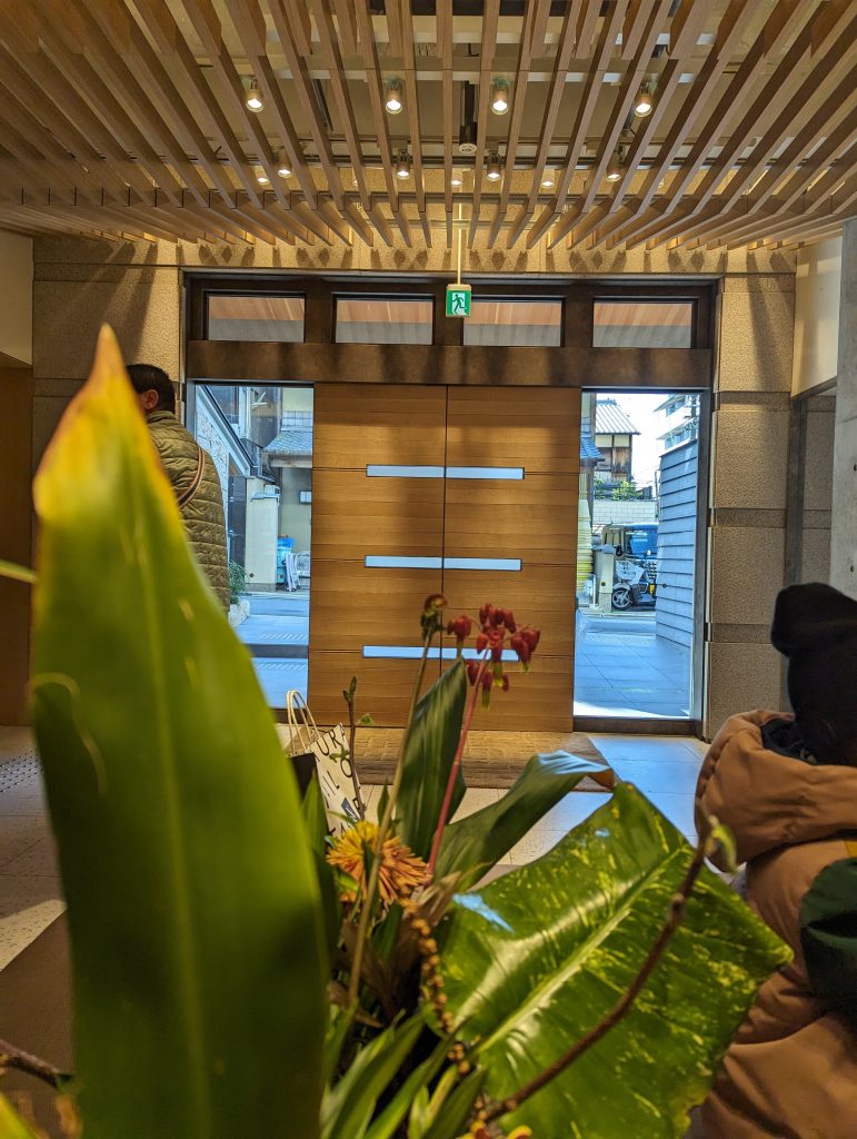 Während wir am Dienstag, den 27.03.2024 frühzeitig bei bestem Wetter in Tokyo gestartet waren, empfing uns Kyoto mit Schneeregen. Seit unserer Regenzeit in NYC sehen wir diesen Wetterlagen mit etwas mehr Gelassenheit entgegen. Vom Bahnhof ging es für uns mit dem Bus direkt zum Hotel in der Hoffnung, wenigstens unserer Gepäck abstellen zu können. Zunächst hieß es in einer ganz langen Schlange anstellen. Dank Google Maps kannten wir Bahnsteig und Abfahrtszeit. Ob es so geplant wird oder Zufall war, jedenfalls kamen direkt nacheinander mehrere Busse unserer Linie zum Einsatz. Die gesamte Schlange war abgebaut und wir glücklich im Bus unterwegs. Dank der Pasmo Card auch hinsichtlich der Bezahlung stressfrei.