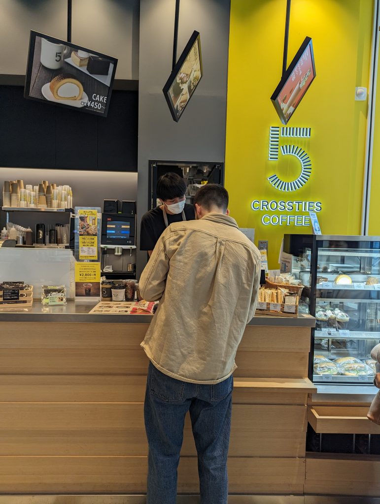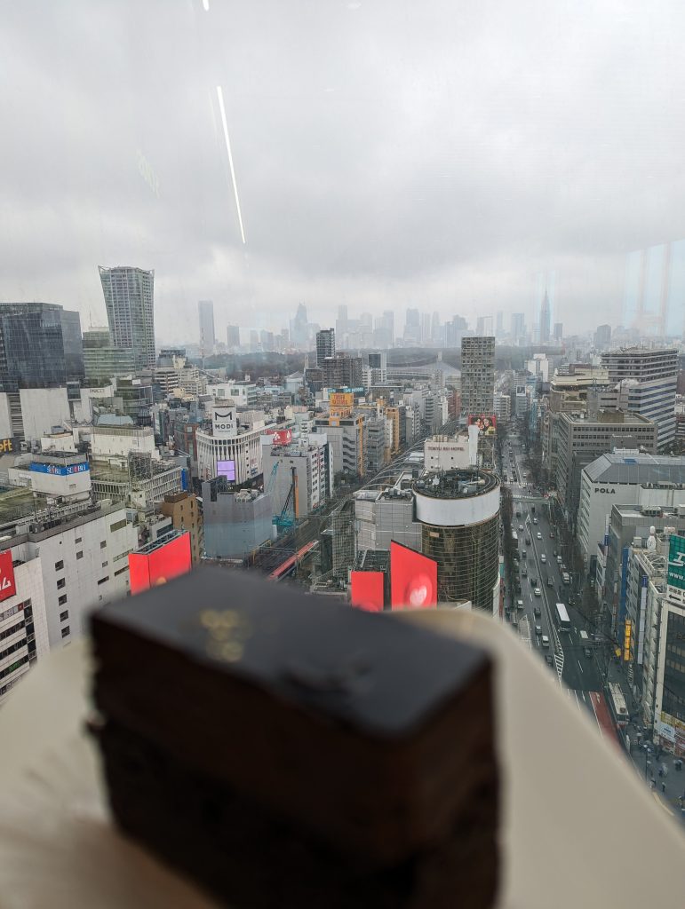 Wir finden die Location und sind zunächst irritiert, warum dort Leute bei dem Wetter entspannt vor der Tür Platz genommen haben. Einige stehen etwas geschützt vor dem benachbarten Haus. Dann wird uns bewusst, dass diese Menschen alle die gleiche Idee hatten und mangels Platz bereits „anstehen“. Mit dem netten Hinweis von ca. 2 Stunden Wartezeit geben wir auf. Auf dem Weg nach Shibuya wird sich eine Alternative finden und auch ist unser Hunger noch nicht vorhanden, so morgens um vier in Deutschland. Bei unserer Suche geben wir grundsätzlich „Avocado Brot/Toast“ ein, so können wir sicher sein, dass die angezeigten Lokale (sofern vorhanden) unseren Geschmack treffen :). Wir fahren weiter nach Shibuya, unserem Tagesziel. Google Maps führt uns sicher durch den unfassbar großen Shibuya Bahnhof zum Vorplatz und dann steuern wir direkt auf einen Einkaufspalast zu, dem Shibuya Scramble Squares, denn dort soll man u.a. Kaffee und Snacks bekommen.