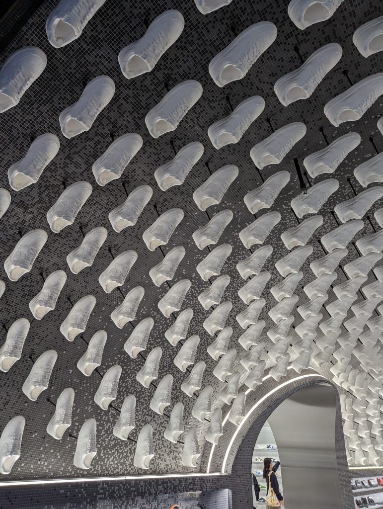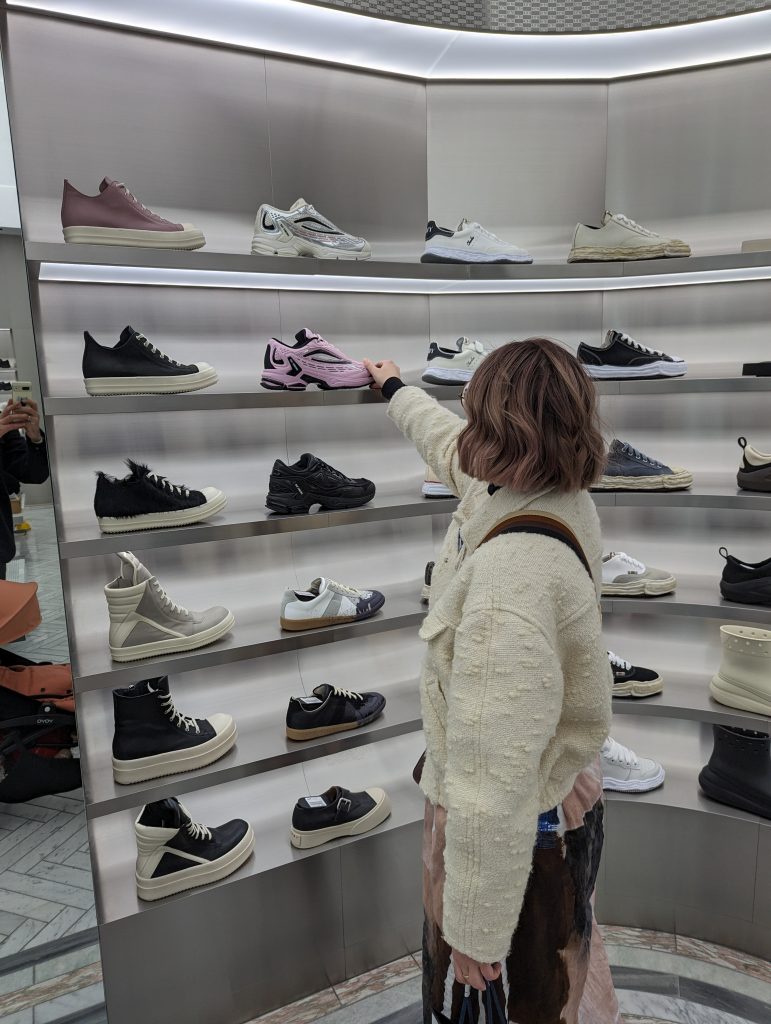 Bevor es aber über die Kreuzung ging, wurden erste Souvenirs geshoppt. Von den Stockman Puppen war ich ziemlich beeindruckt. Das Outfit mit dem hellen Mantel hat mich begeistert. In jedem größeren Einkaufspalast gibt es kulinarische Food Abteilungen. Die Auswahl ist so groß, dass man am Ende nichts kauft. Die jungen Reiseteilnehmer haben sich während unserer Reise allesamt Sneaker unterschiedlichster Marken gekauft. Aufgrund der in Japan bestehenden Kollaborationen gibt es in Japan wohl ganz besondere Sneaker und einige davon nur in Japan. Laut Google: „Die mittlerweile regelmäßigen Kooperationen von Nike mit dem luxuriösen Modehaus Sacai der japanischen Designerin Chitose Abe sind zu einem festen Bestandteil der Sneaker-Kollektionen auf der ganzen Welt geworden.“ Oder: „Der japanische Modedesigner und Künstler Nigo hat sich mit Nike zusammengetan. Der Designer hat jahrelang mit adidas zusammengearbeitet, aber vor kurzem wurde bekannt gegeben, dass diese Zusammenarbeit zu Ende geht.“ Hätten ich das mit den Sneaker nur vorher gewusst…