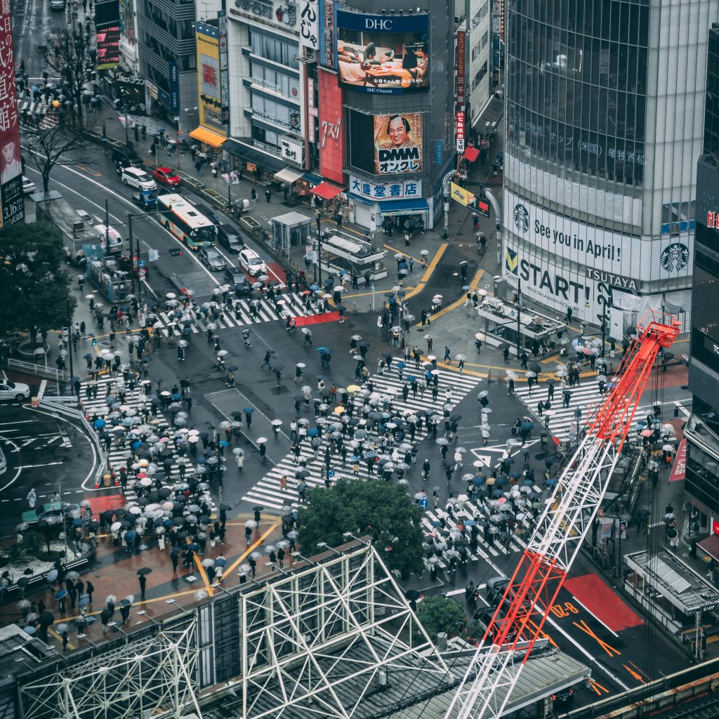 Zu Stoßzeiten sollen wohl über 3.000 Menschen gleichzeitig über diese, aus 5 Himmelsrichtung verlaufende Ampelkreuzung gehen. Wir konnten das zum Sonntag Vormittag nicht feststellen. Allerdings war es später so mittendrin schon recht voll und die Sache mit Kevin war oberste Priorität. Am Samstag der Folgewoche probierten wir die Kreuzung erneu aus, ohne Schirm ;). Diese in allen Reiseführen erwähnten Menschenmassen blieben uns erspart. Wenn ihr uns fragt, man muss diese Kreuzung nicht unbedingt als Reisehighlight abspeichern. vor Ort könnte man möglicherweis enttäuscht sein.