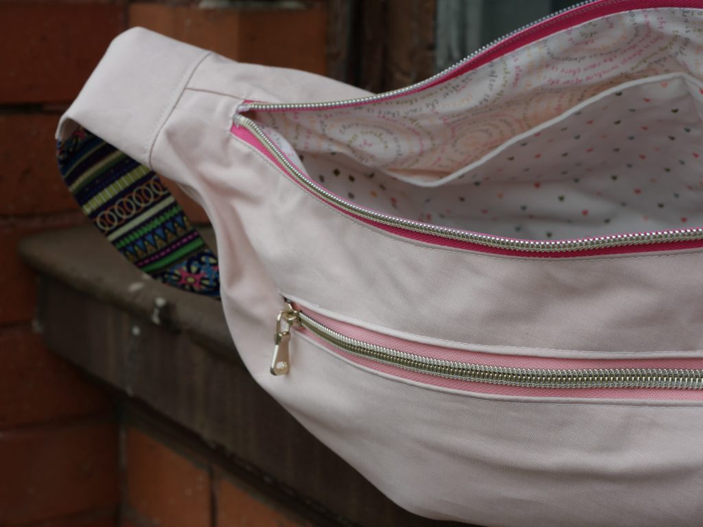 Für das Innenfutter habe ich Stoffe aus den Abo-Boxen von DMIN verwendet bzw. aus Stoffen, die ich aufgrund der Boxen nachgekauft hatte. Den Außenstoff habe ich nicht verstärkt, sondern nur den Futterstoff mit Volumenvlies H630. Auch die RV sind von DMIN, liebe die RV von Barbara. Auf Instagram konnte ich schon weitere Moon Bags in M und L bewundern. Krass wie kreativ einige hinsichtlich des Materials und der Farben sind. Garantiert ist das Schnittmuster auch sehr gut zum Upcycling geeignet.