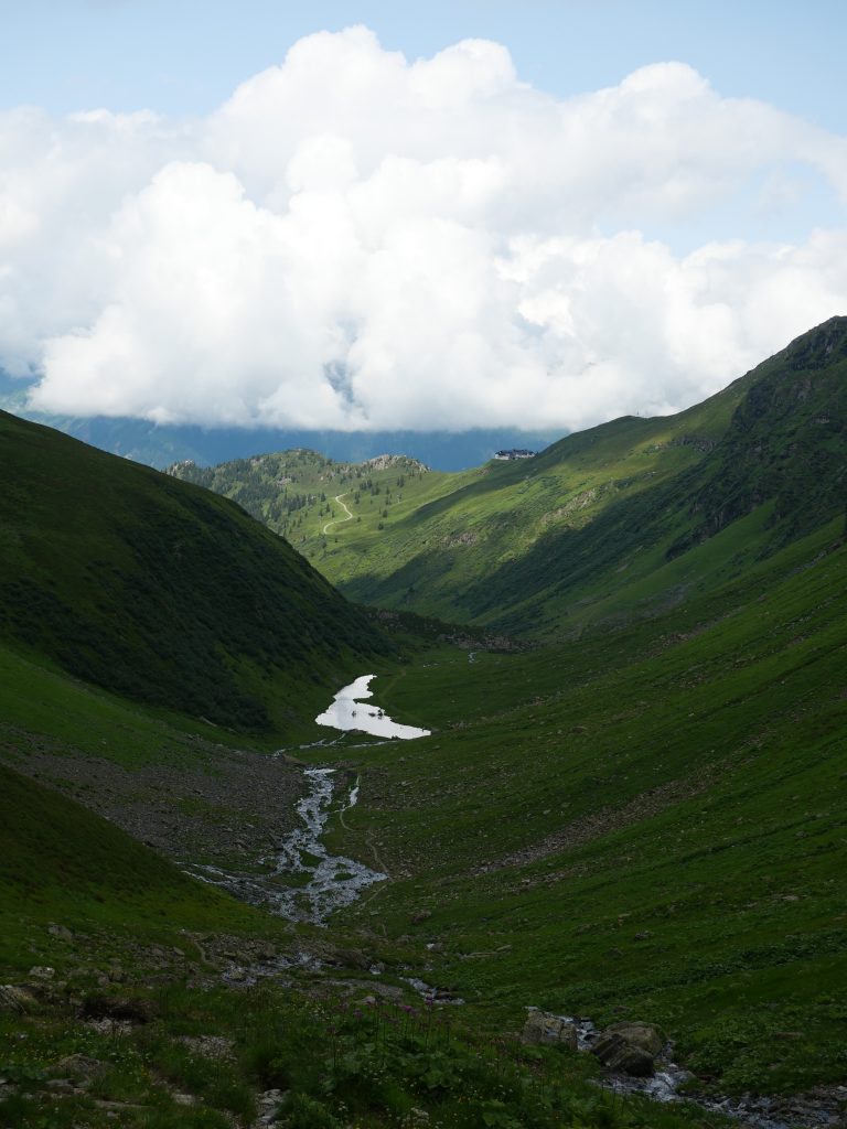 Wir konnten uns noch gut an die großen Schneefelder erinnern und auch, dass wir mit vielen weiteren Wanderern den Abstieg über das Matschuner Joch durch das Nova Tal gewählt hatten.