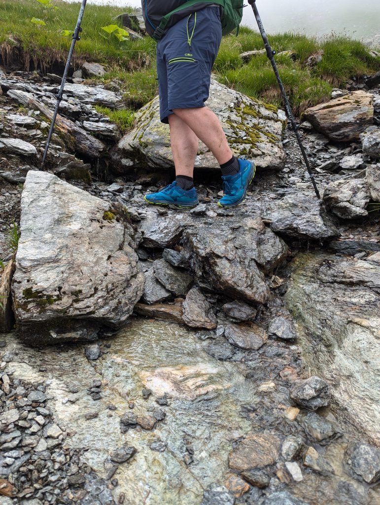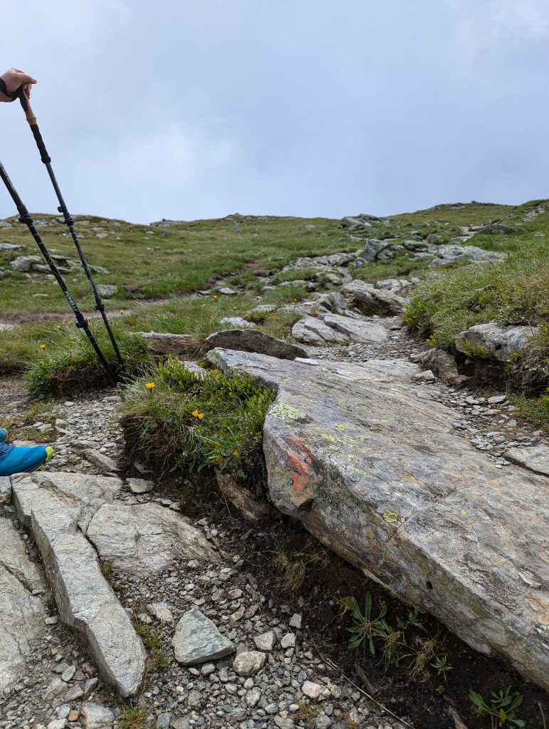Selbst wenn ich meinen Blog Post vom 31.07.2021 vorab gelesen hätte, wären wir auf den anfangs steilen und steinigen Weg nicht vorbereitet gewesen. Der damalige Post lässt diese Herausforderung nicht erkennen. Wir konnten uns nicht erinnern, über einen so langen Wegabschnitt auf ausschließlich Gesteinsbrocken gewandert zu sein und hätten fast behauptet, dass die Gesteinsbrocken neu aufgeschüttet worden sind. Wenn die rot/weißen Markierungen nicht gewesen wären, hätten wir wohl nach dem „richtigen“ Weg für den Aufstieg gesucht. Aus anfänglicher Gelassenheit wurde nun hochkonzentriertes und stilles Wandern.
