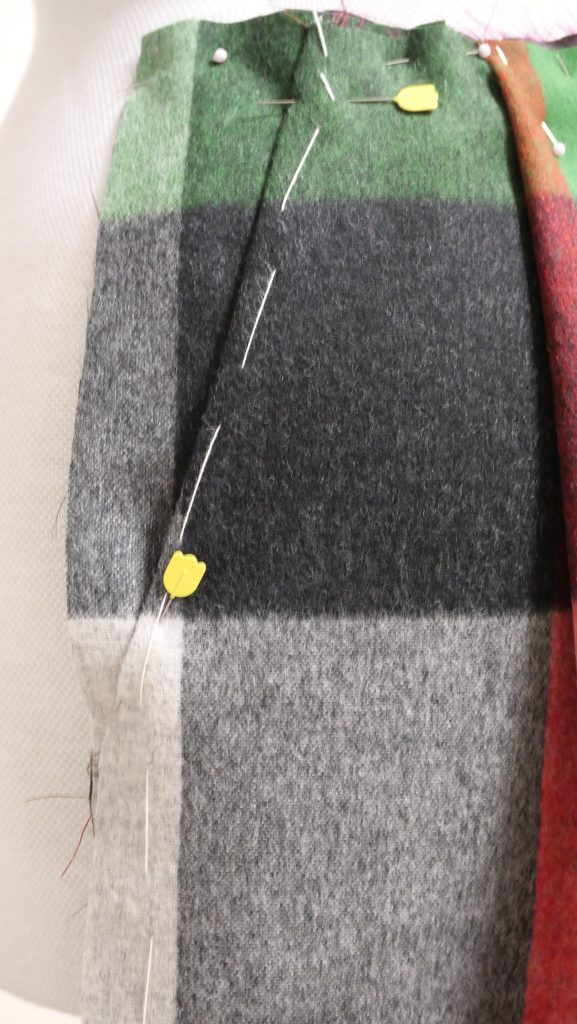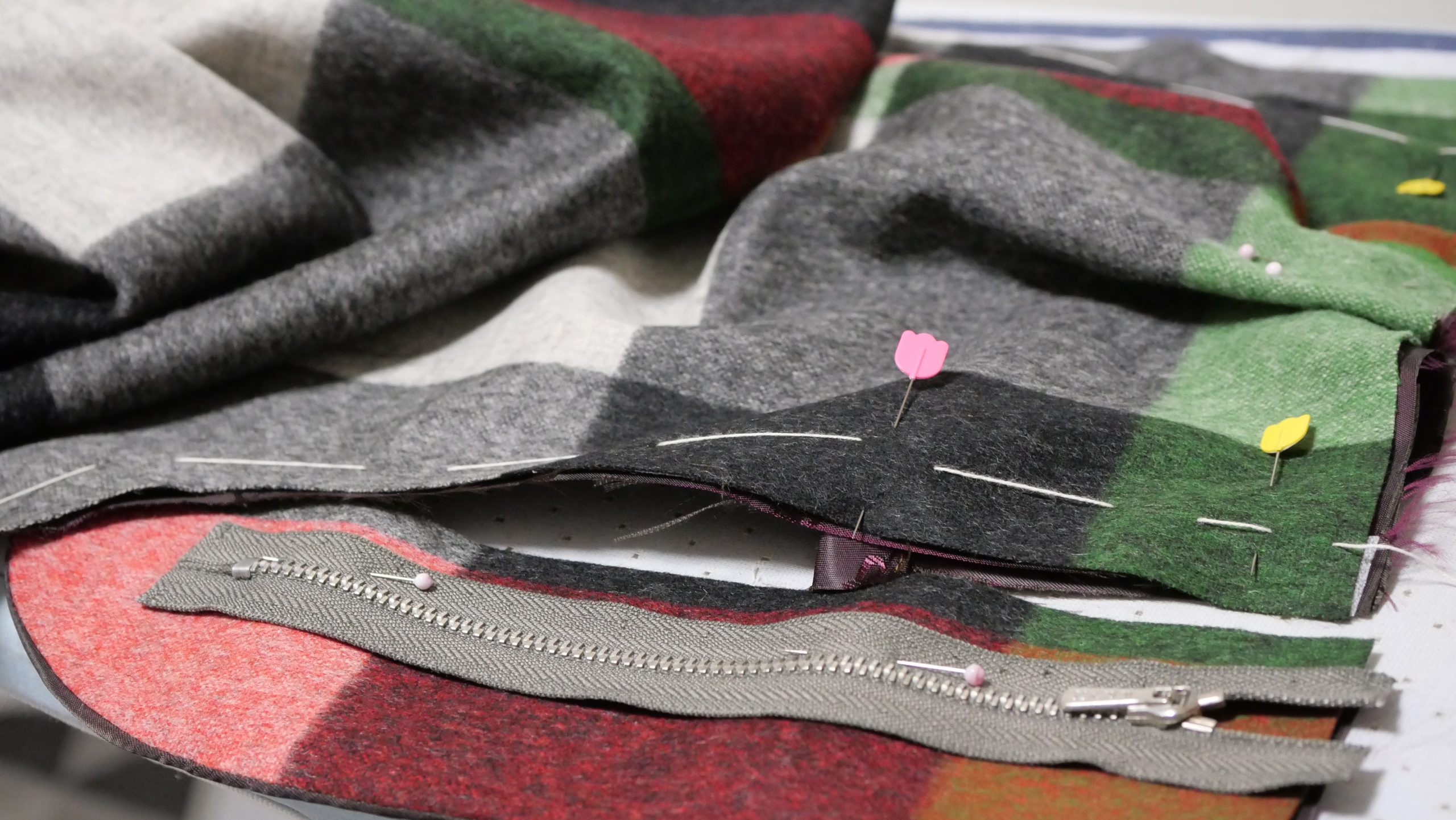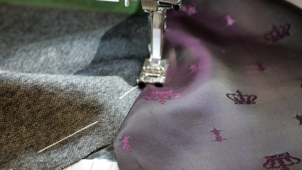 Die Taschen und der Reißverschluss sind eingearbeitet. Beide Taschenbeutel sind aus Futterstoff gefertigt. Ich habe beim Tascheneingriff einen Beleg aus dem Hauptstoff aufgenäht, damit ich möglichst viel Reststoff zur Verfügung habe. Der Plan einer Weste steht also immer noch.