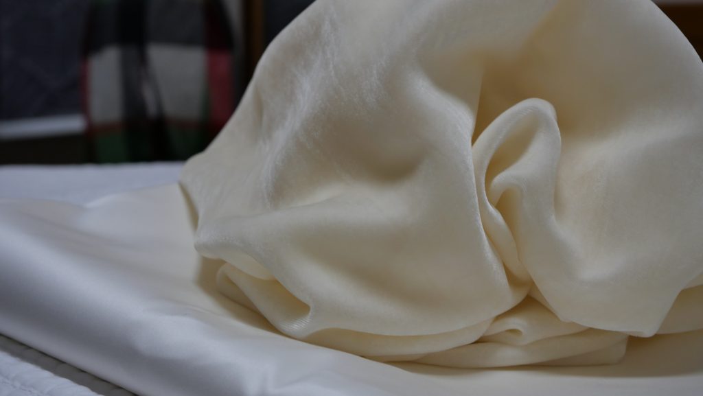 Wow – das passt doch bis jetzt perfekt! Cool, auf die Hose freu ich mich und ich drücke die Daumen, dass der Stoff noch für eine Weste reicht. Die Baumwoll-Seide sieht schon auf dem Bild großartig aus. Sie muss sich traumhaft tragen.